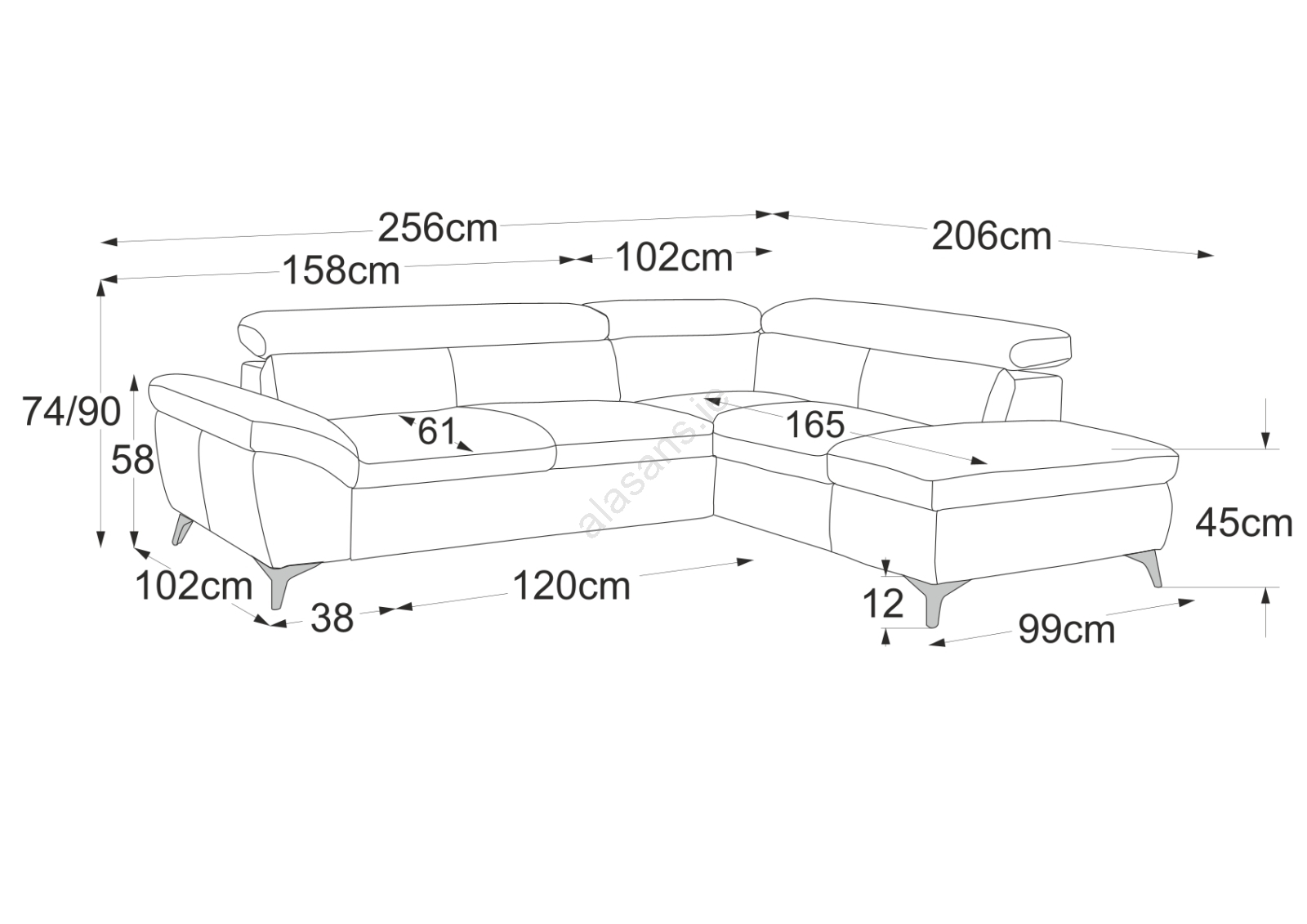 • With a seat height of 45 cm, a backrest height of 74 to 90 cm, and a seat depth of 61 cm, it ensures comfortable and ergonomic seating.