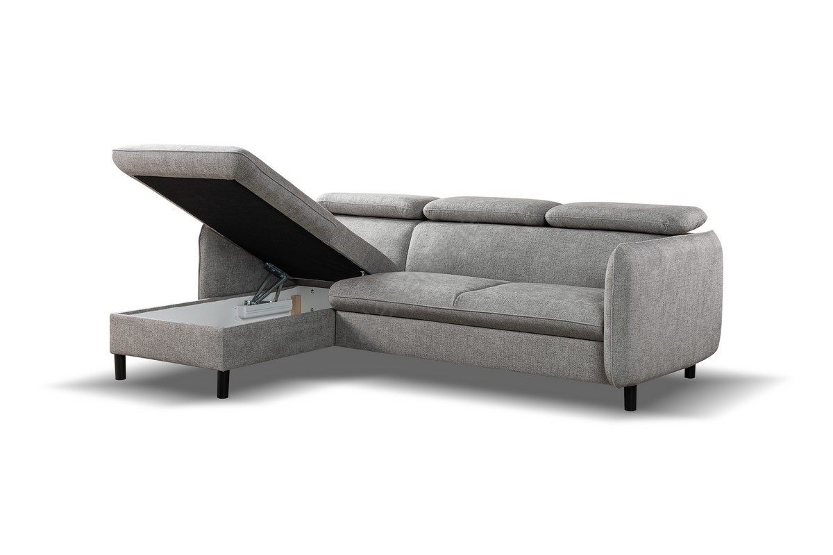 NISA L-Shaped Corner Sofa Bed with Storage, Left-Facing, Grey