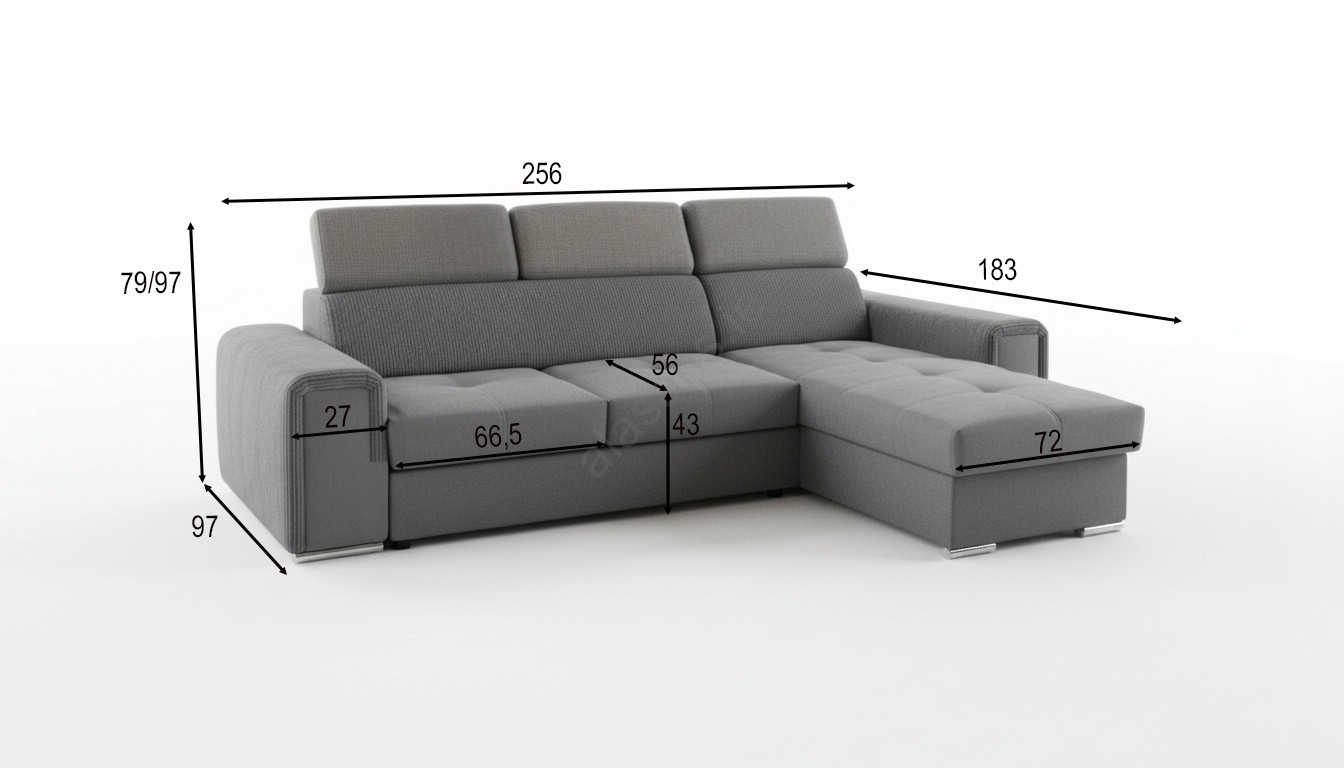 • The sofa offers 3 adjustable headrests with 5 adjustment levels.