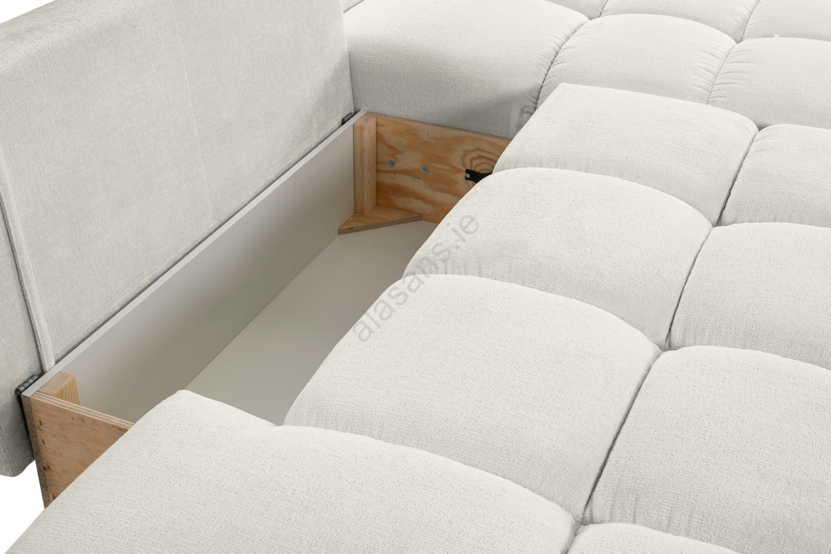 • ALMADA Right-Hand L-Shaped Upholstered Corner Sofa Bed with Storage, Beige