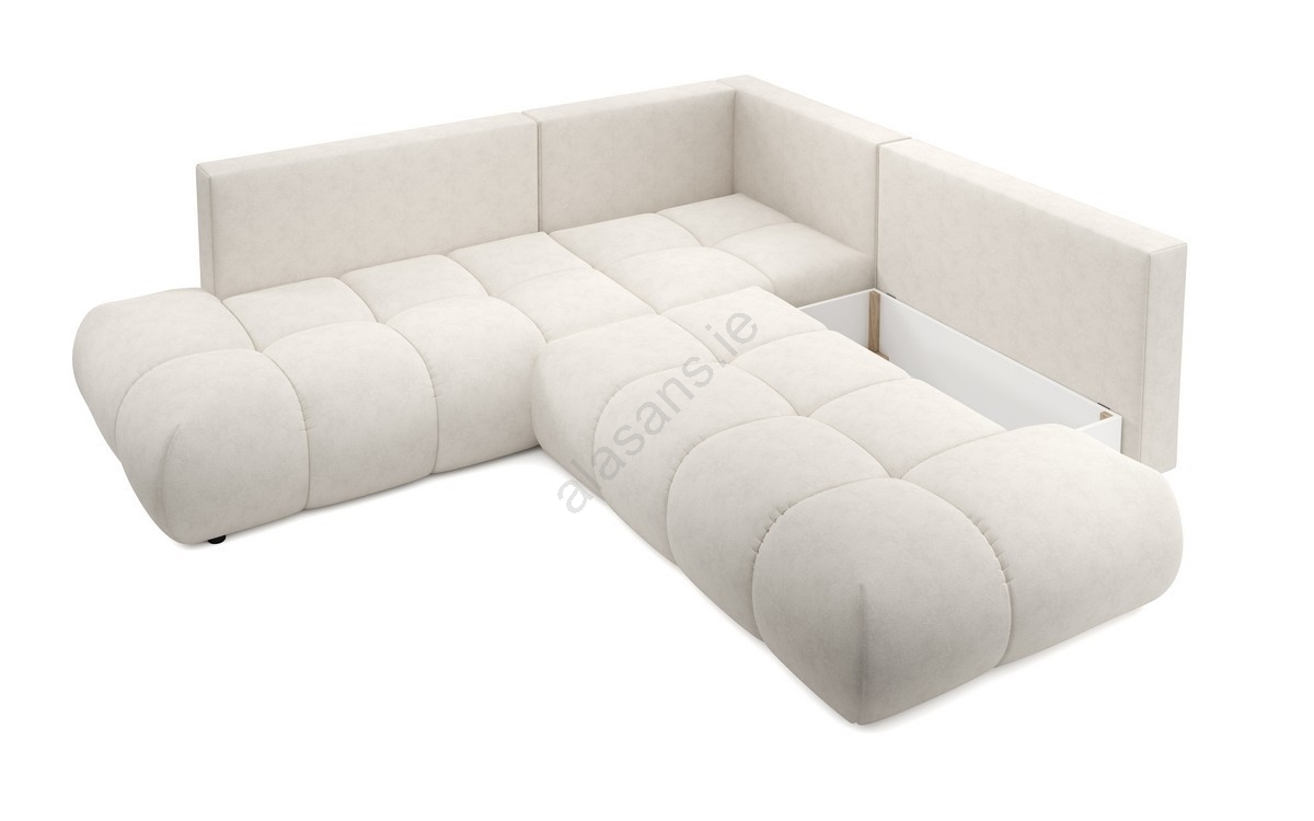 • ALMADA Right‑hand L-shaped Upholstered Corner Sofa Bed with Built‑in Storage, Beige
