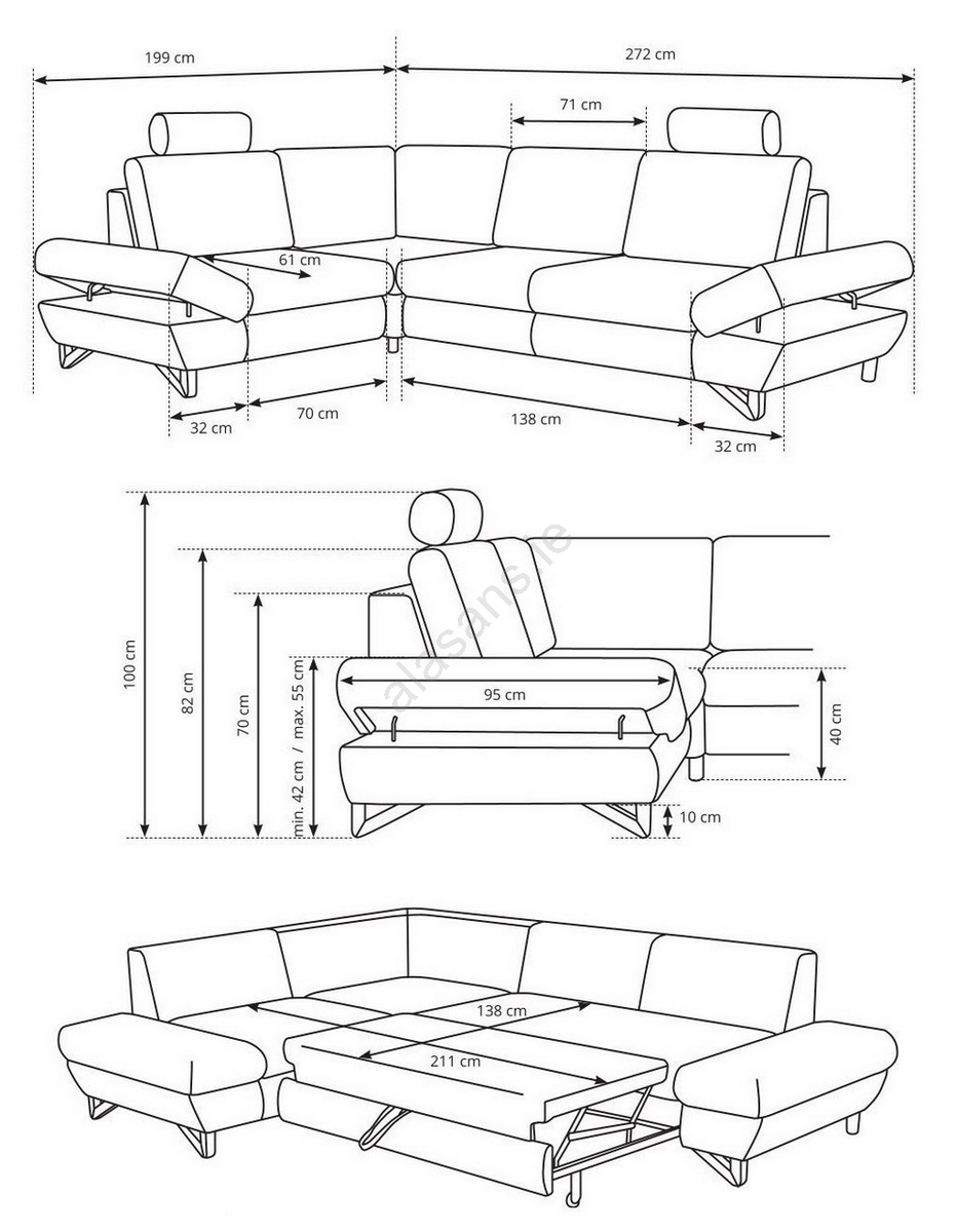 • Thanks to the pull-out bed function (dolphin-style) it can be easily transformed into a comfortable sleeping area.