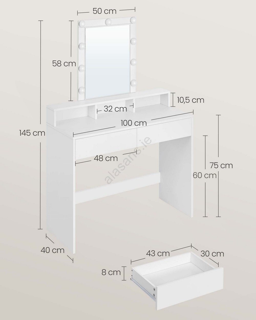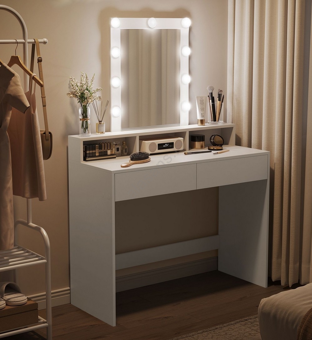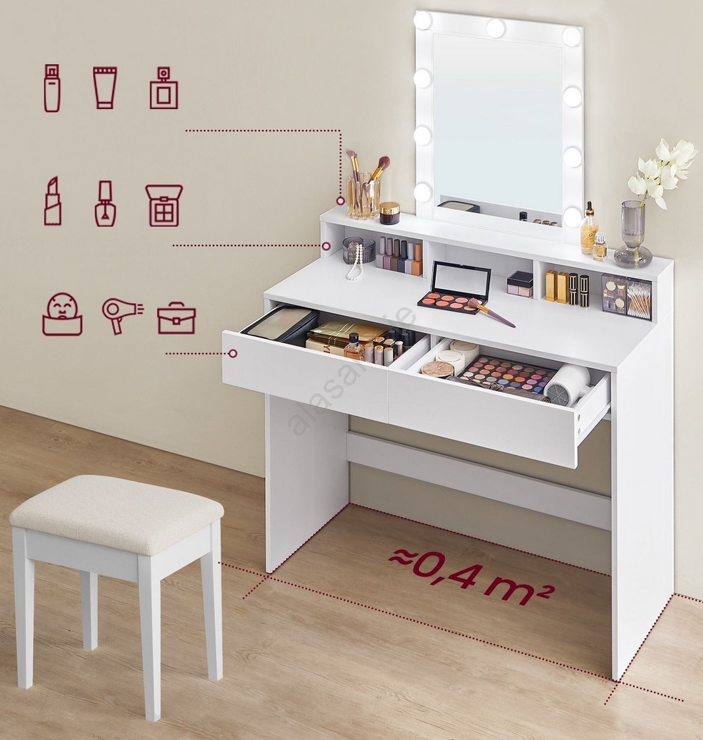 • 2 drawers and a shelf keep your cosmetics and make-up within easy reach.