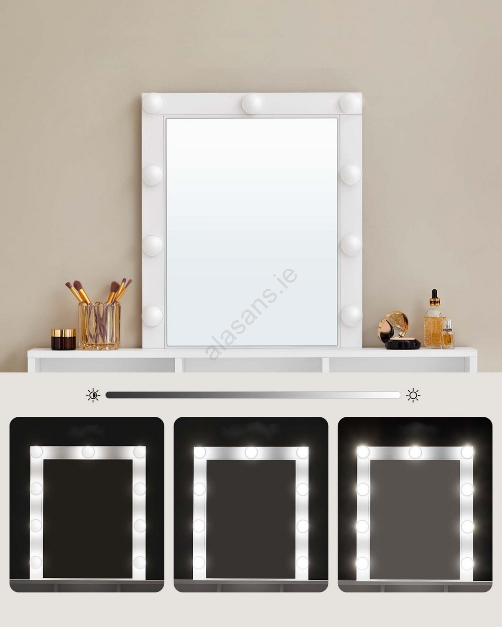 • Equipped with 9 dimmable LED bulbs around the mirror.