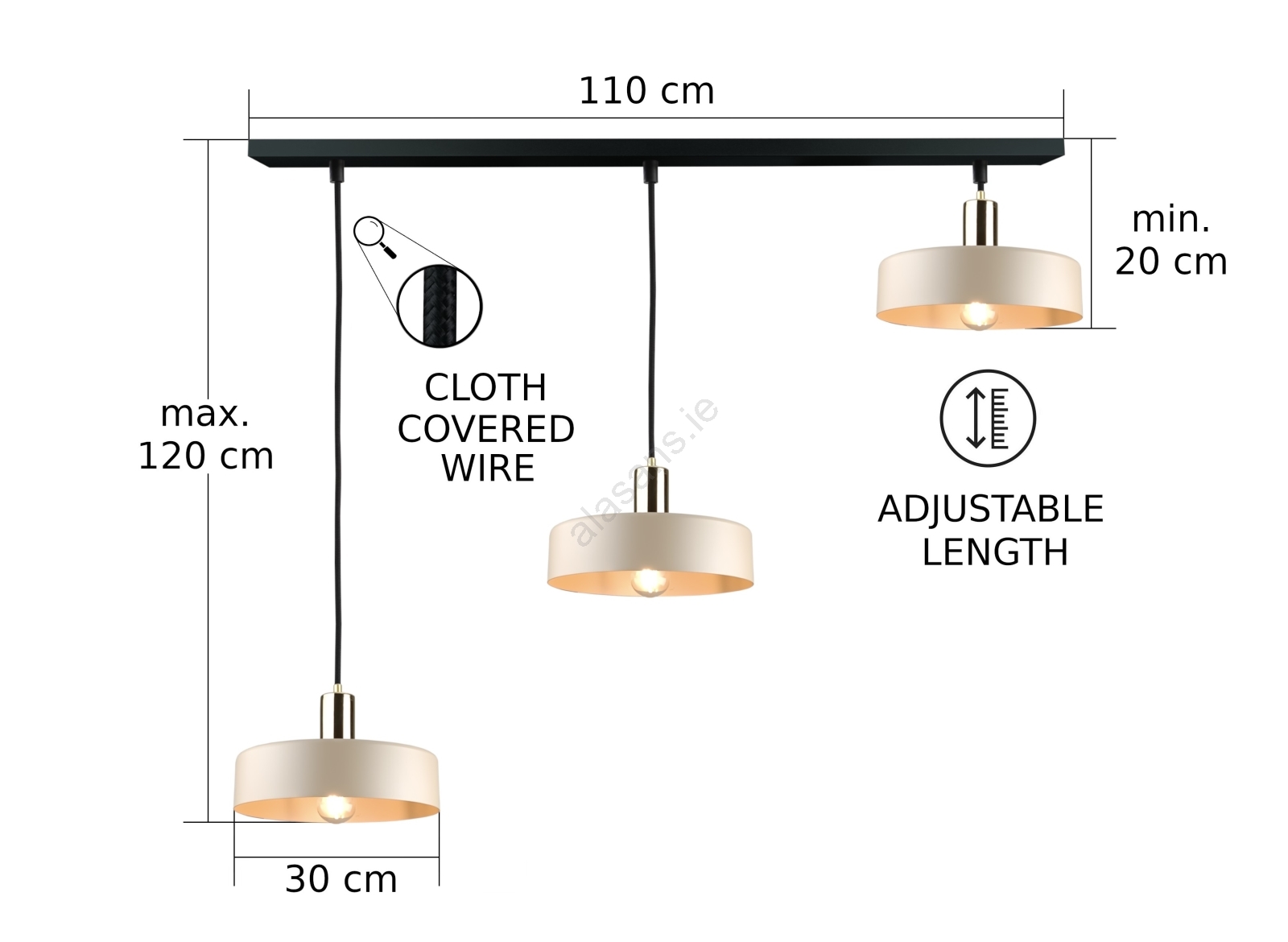 • LATTE Corded Pendant Light 3xE27/60W/230V beige/black/gold