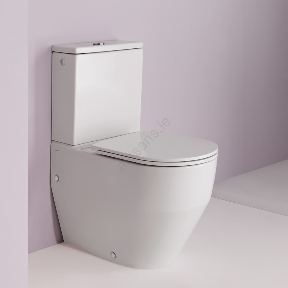 • Floor-mounted toilet with siphonic deep flush and rimless design.