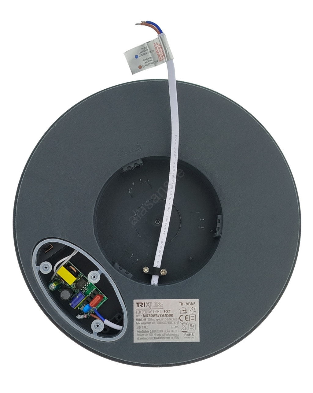 • LED Bathroom Ceiling Light with Motion Sensor, 20W/230V, Selectable 3000/4000/6500K, Ø 23 cm, IP54, White