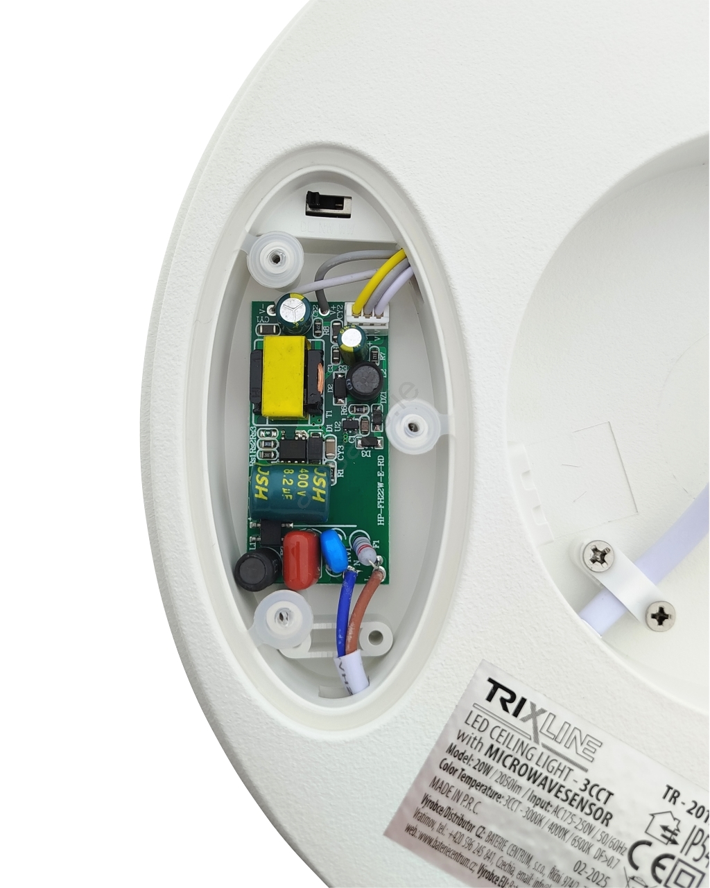 • LED Bathroom Ceiling Light with Motion Sensor, 20W/230V, Selectable 3000/4000/6500K, Ø 23 cm, IP54, White
