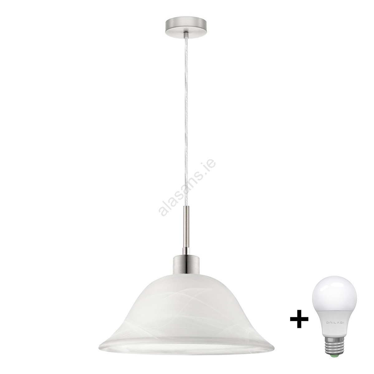 Cable-suspended LED pendant lamp 1xE27/60W/230V white/clear characterizes nice and functional design.  A bulb with E27 cap is suitable for the light. Here, you can buy other bulbs at advantageous prices. You will have an interesting addtiion to your home.
