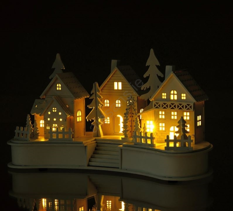 • Decoration made of plywood in the shape of a Christmas village.
