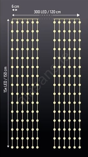 LED Christmas curtain made of thin wires with 300 mini LEDs