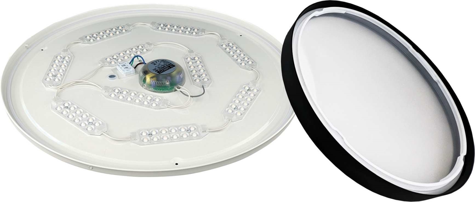 • The diffuser is made of opal plastic that evenly distributes light across a wide 110° beam angle, producing pleasant, glare-free illumination.