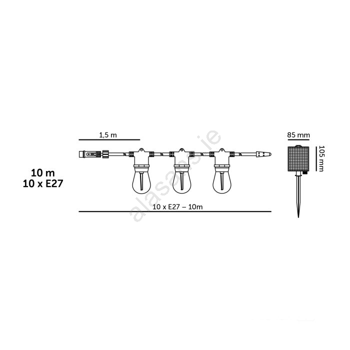 LED Dimmable Solar Decorative String Lights STARLIGHT NEO 10xE27/3,7V 2700K IP54 1200 mAh 11,5m + Remote Control characterizes nice and functional design.  A bulb with E27 cap is suitable for the light. Here, you can buy other bulbs at advantageous prices. You will have an interesting addtiion to your home.