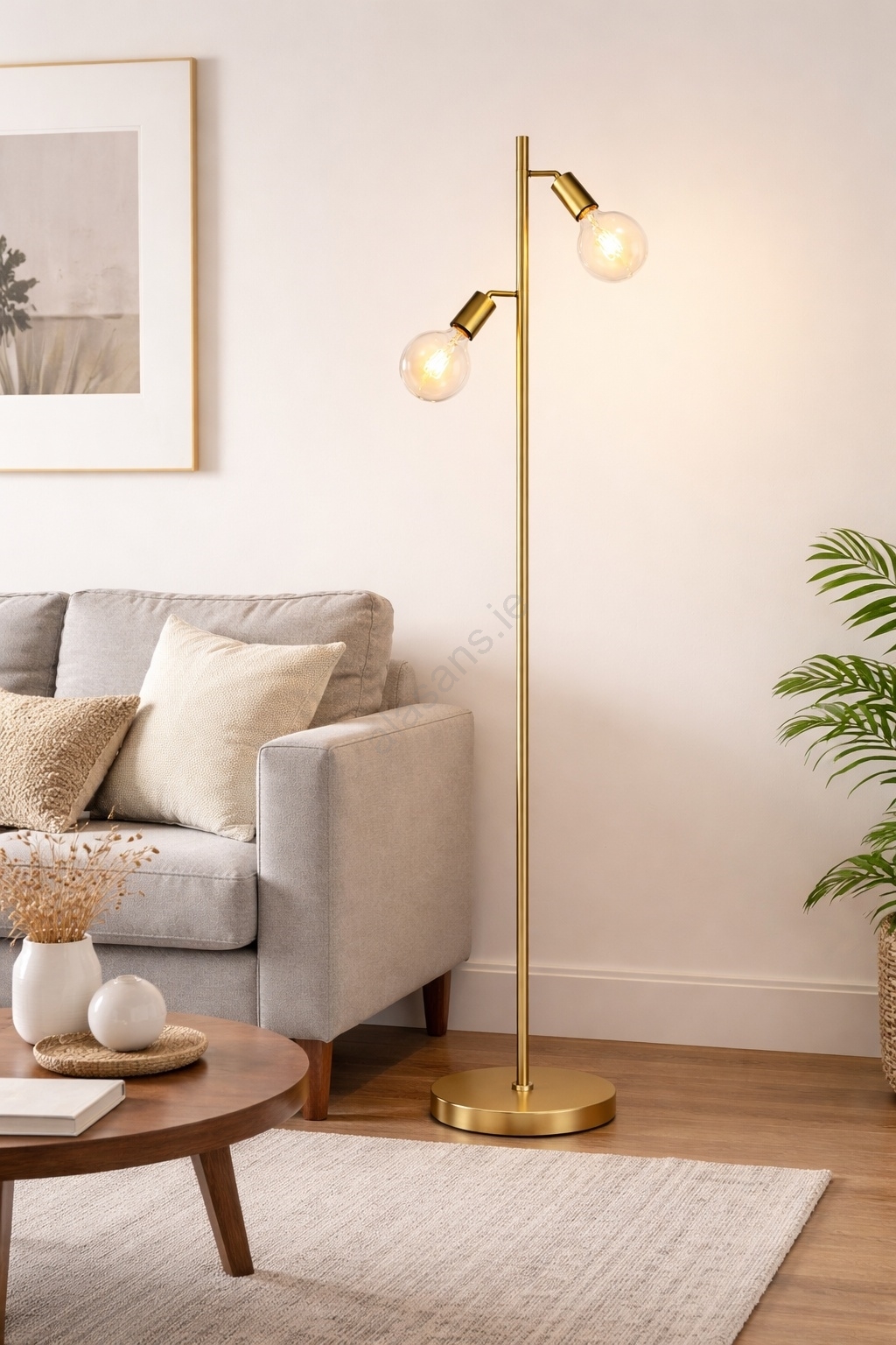 LED Floor Lamp 2xE27/7W/230V 2000K Gold