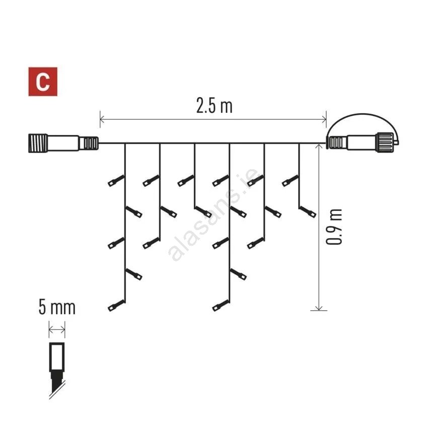 • Length of the illuminated cable: 2,5 m.