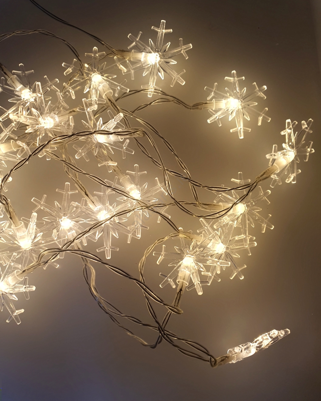 LED Outdoor Christmas String Lights 20×LED / 2×AA, 2.2 m, IP44, Warm White, Snowflake Design