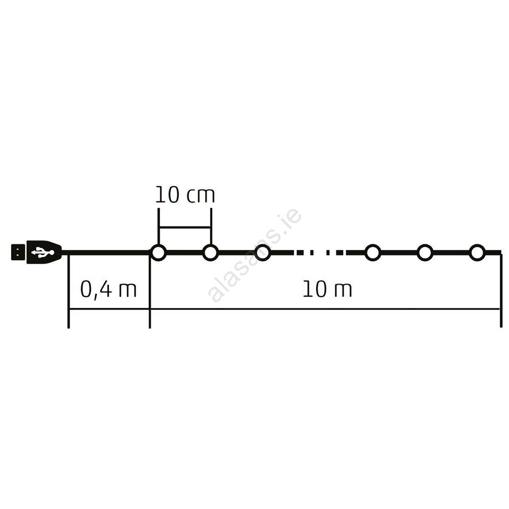 • The length of the illuminated section is 10 meters and contains a total of 100 LEDs.