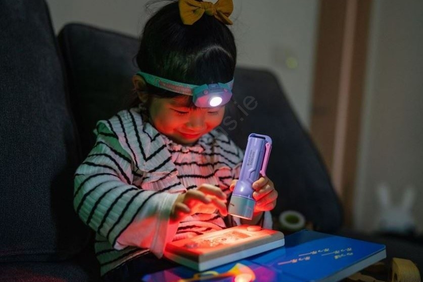 • Child-safe handheld flashlight specially designed for young explorers and their sensitive eyes.