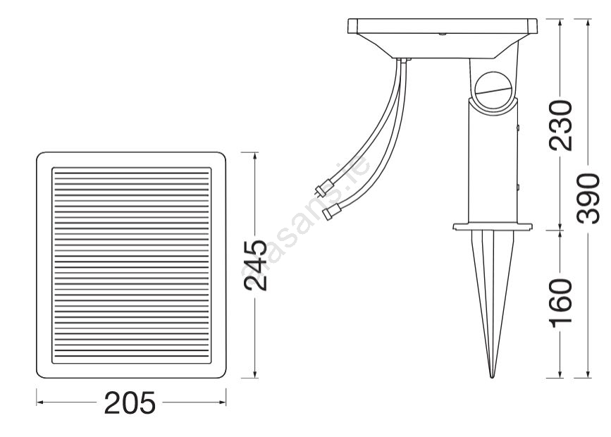 • When connected to the electrical grid, the fixture automatically switches to mains power once the solar panel battery is depleted.