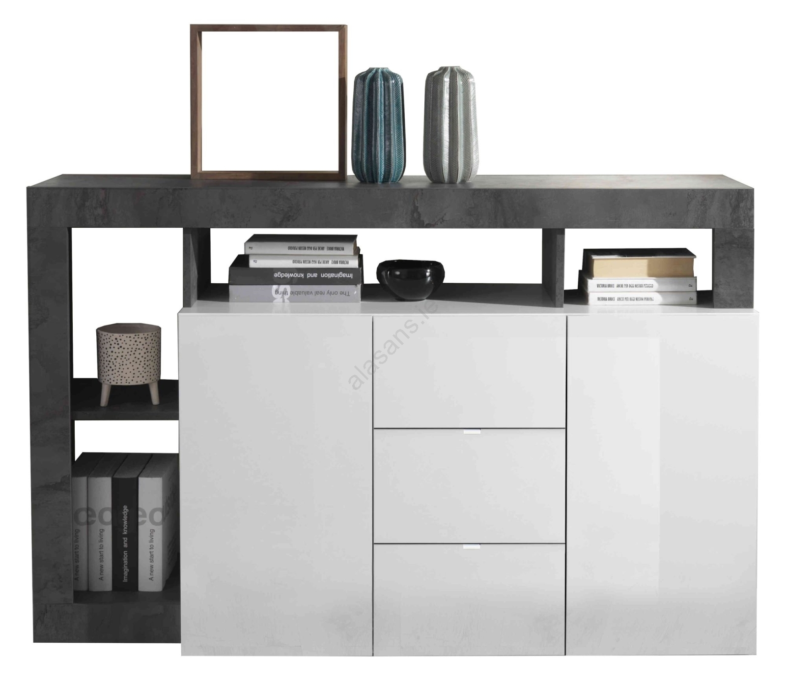 • LENOR Chest of Drawers – White/Gray Concrete Effect