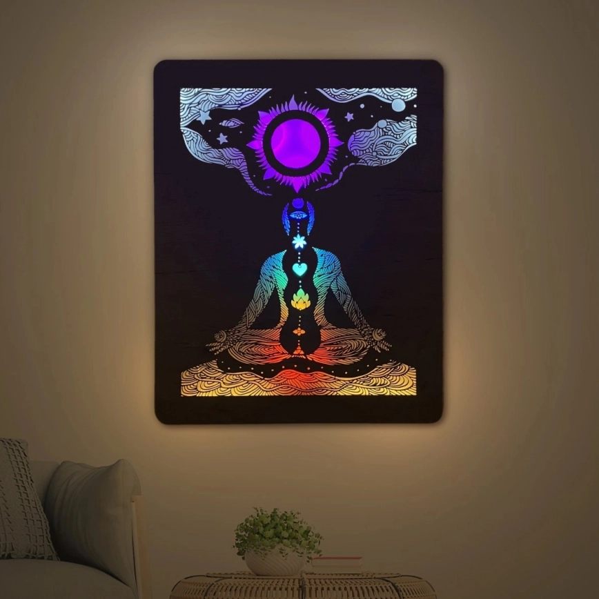 Li-Go 4421/A/4 - Dimmable LED Wall Decoration LED/10W/5V 30000 mAh 70x90 cm Oak/Chakras
