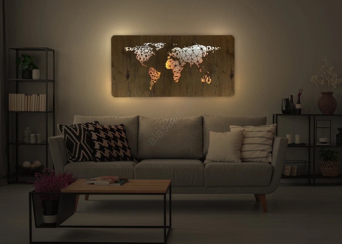 Li-Go 4457/A/4 - Dimmable LED Wall Decor LED/10W/5V 30000 mAh 120x60 cm Oak/World Map
