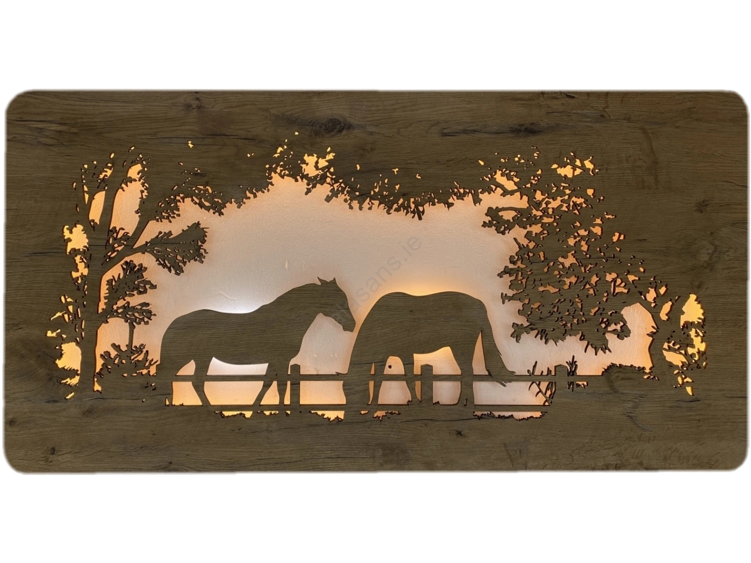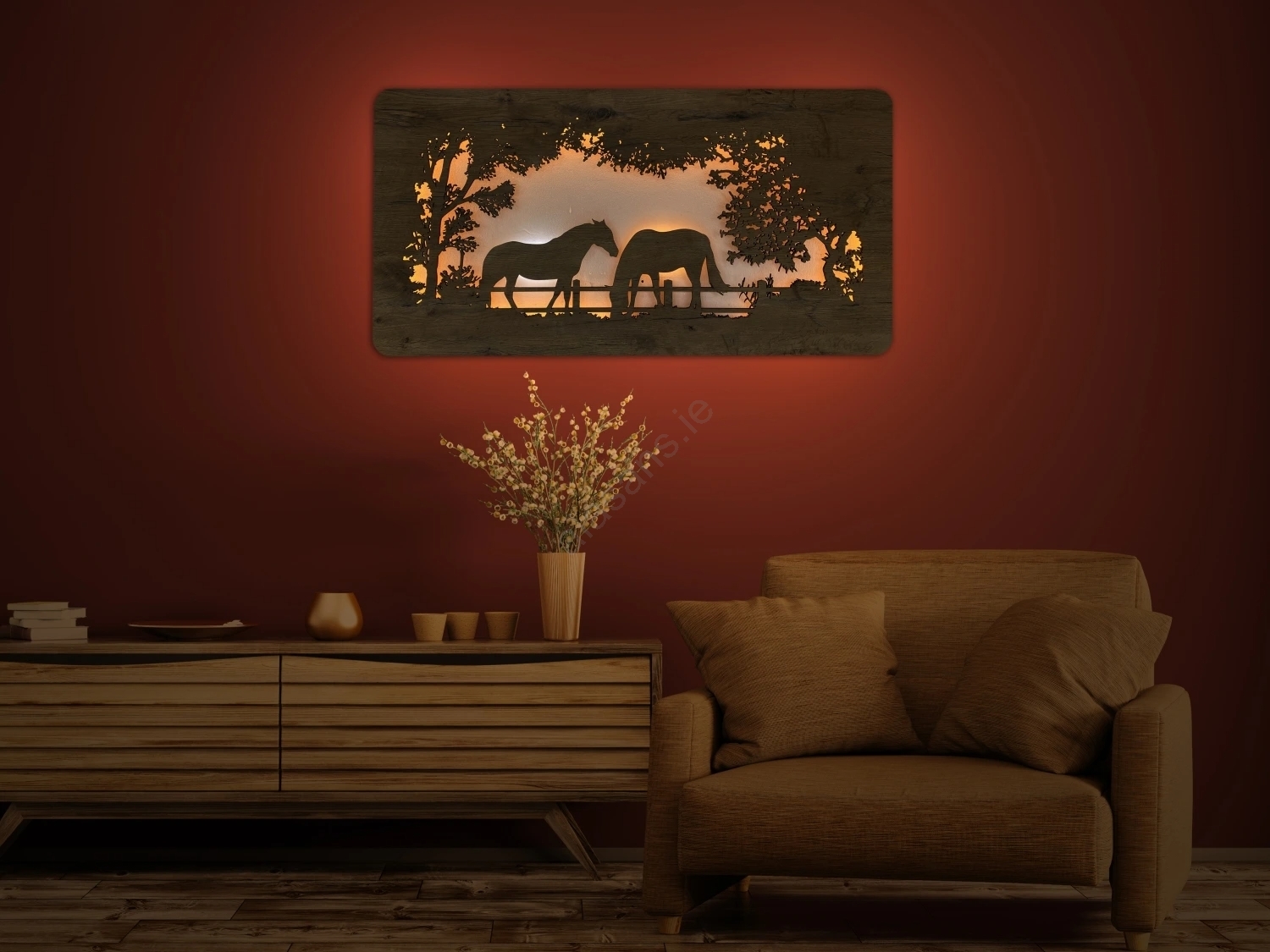 Li-Go 5012/B/4 - Dimmable LED Wall Decoration LED/10W/5V 30000 mAh 120x60 cm oak/Horses + remote control