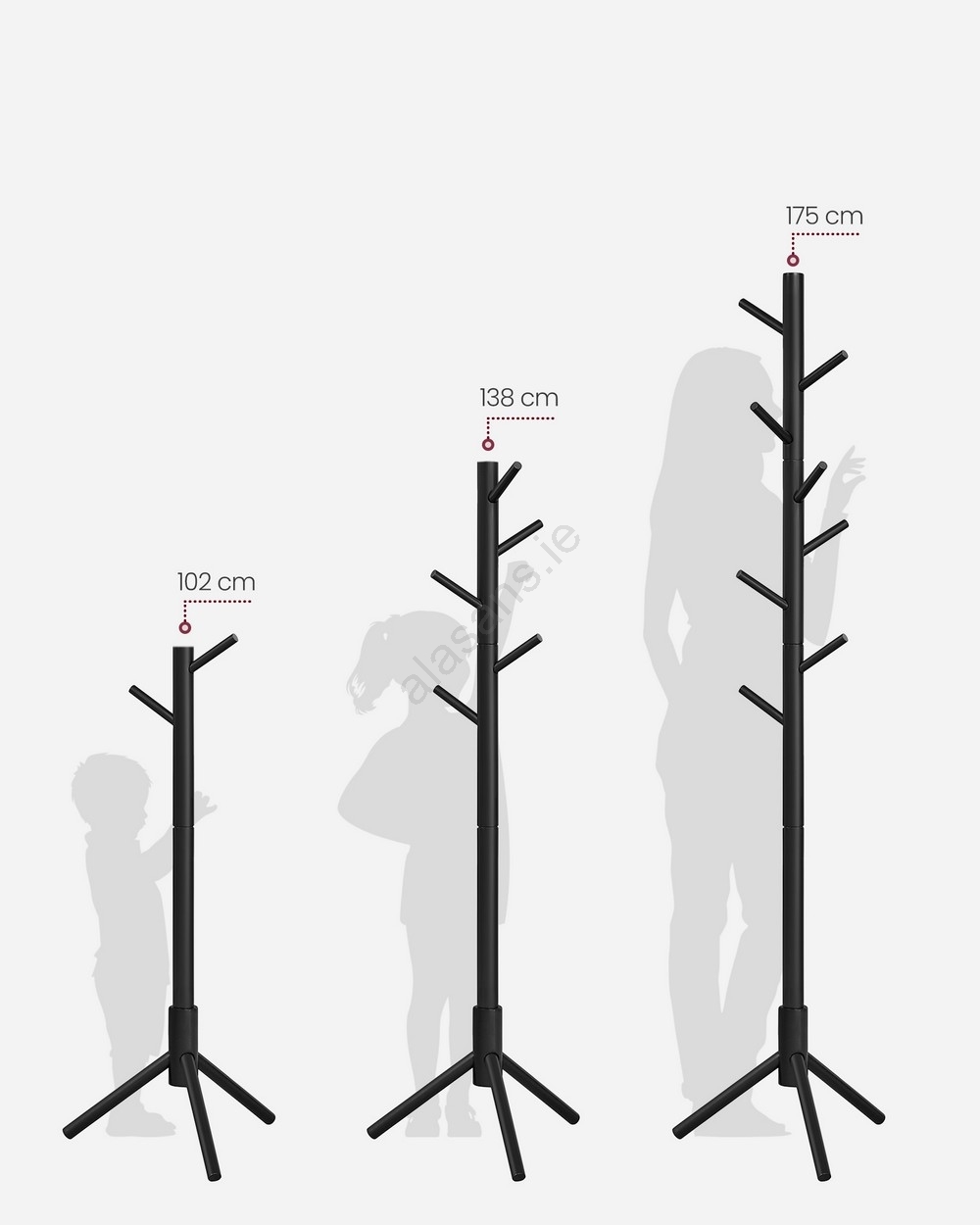• A solid rubberwood pole and a triangular base 47 cm wide provide a sturdy foundation that supports up to 15 kg.