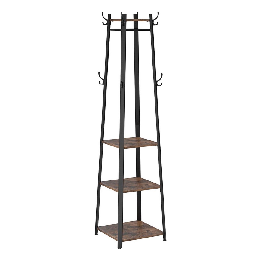 • The rack with a simple square base boasts elegant double hooks andsturdy shelves.