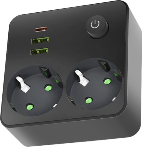 LINEA power strip with switch 2x230V + 3xUSB A/C SCHUKO black