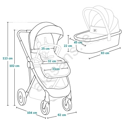• Carrycot with XXL canopy, compliant with EN 1466 for safe carrying of your child.