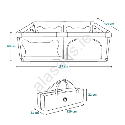 • The playpen's size allows free movement, rolling, crawling and first steps without the risk of leaving the area.