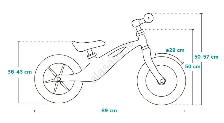 • Height-adjustable handlebars (50 - 57 cm) and saddle (36 - 43 cm) ensure a perfect fit for children up to 6 years old.