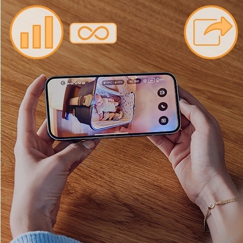 • Thanks to wireless connectivity the monitor offers unlimited range, so you can check on your child even when you’re not at home.