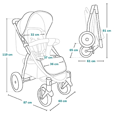 • 9-step handlebar adjustment (81 - 121 cm) for perfect adaptation to the parent's height.