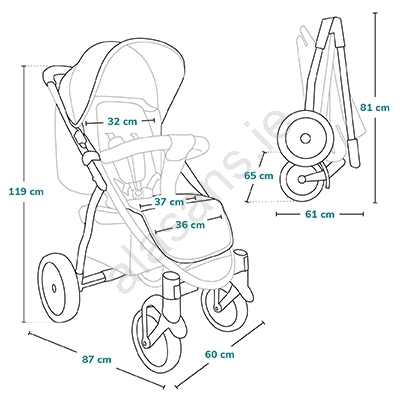 • 9-step adjustable handle (81 - 121 cm) for perfect adaptation to the parent's height.
