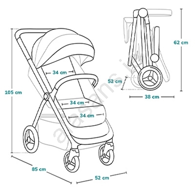 • Large XXL canopy with UPF50+ protection and a waterproof cover ensures comfort on every outing.
