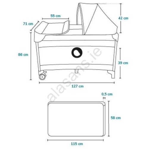 • Includes a travel folding mattress that can also be used in the bassinet (120x60 cm); the bassinet is also included in the package.