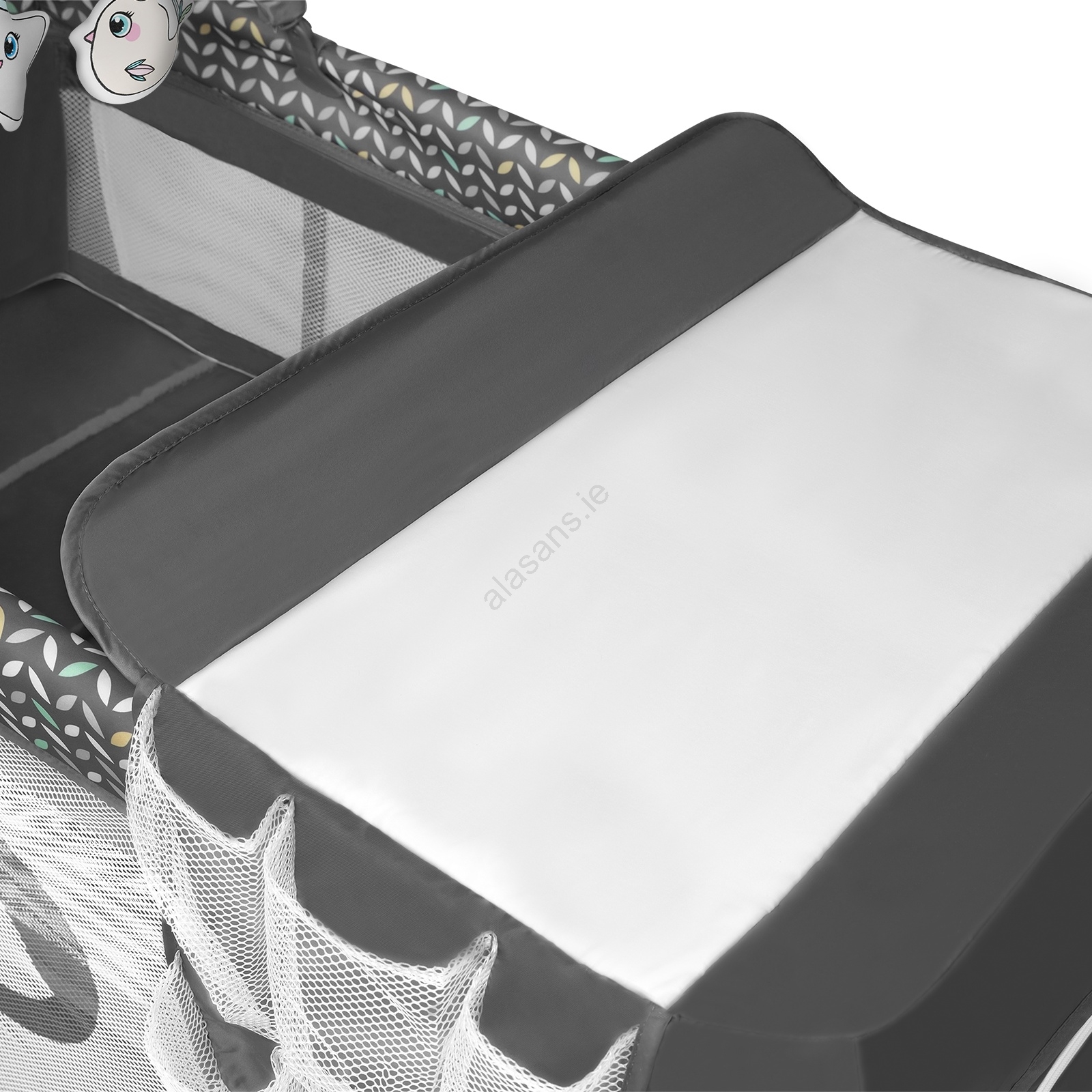 Lionelo - Travel Cot FLOWER Grey Scandi