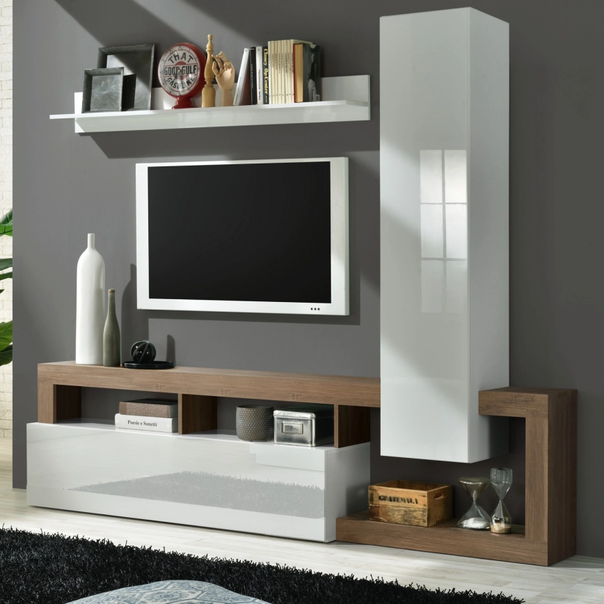 • LENOR Living Room Wall Unit White/Concrete Grey