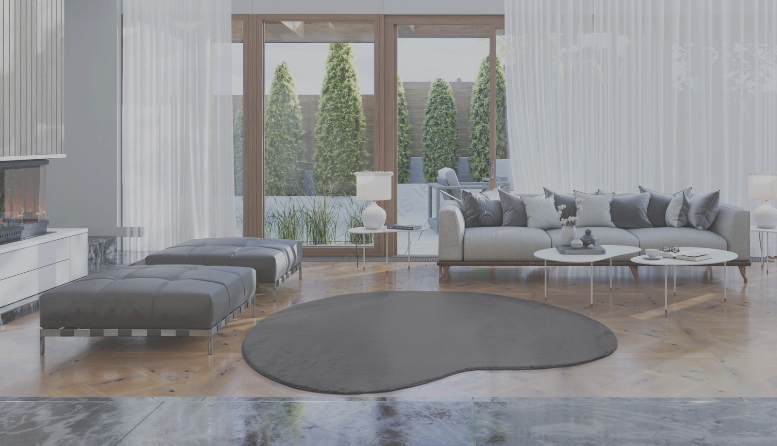 • Elegant bean-shaped rug.