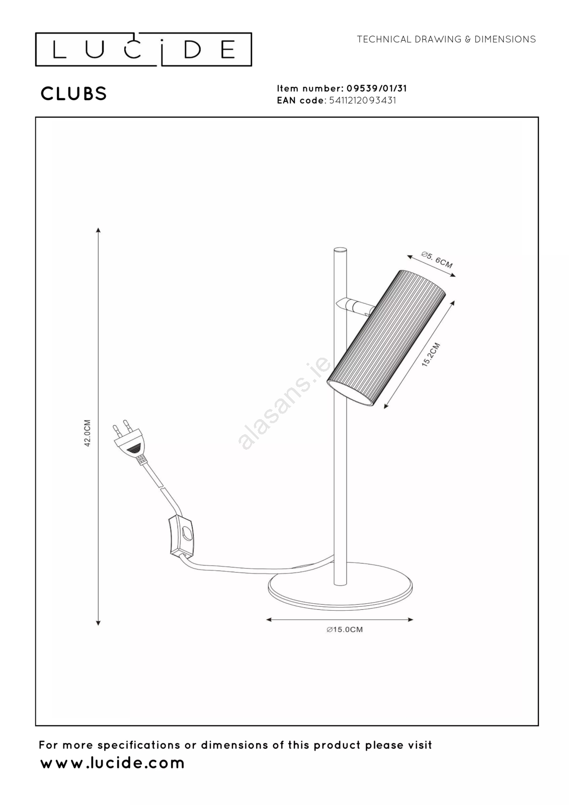 Lucide 09539/01/31 - CLUBS Table Lamp 1xGU10/40W/230V White characterizes nice and functional design.  A bulb with GU10 cap is suitable for the light. Here, you can buy other bulbs at advantageous prices. You will have an interesting addtiion to your home.