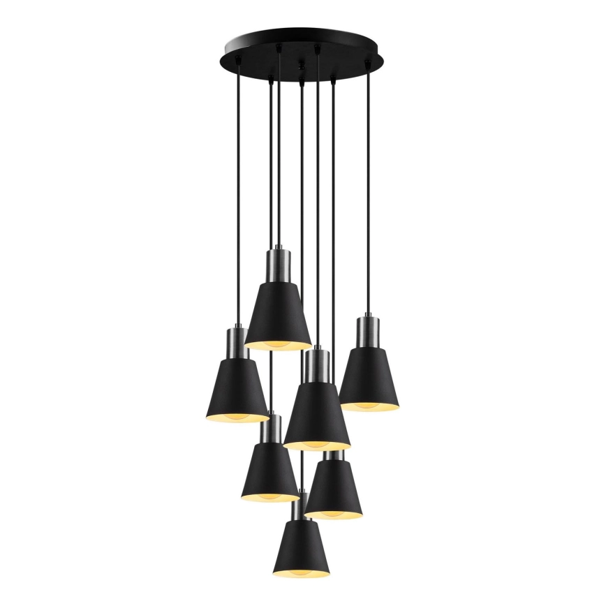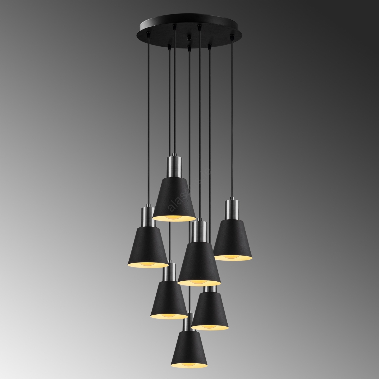 Cable-suspended chandelier KEM 7xE27/40W/230V black characterizes nice and functional design. A bulb with E27 cap is suitable for the light. Here, you can buy other bulbs at advantageous prices. You will have an interesting addtiion to your home.