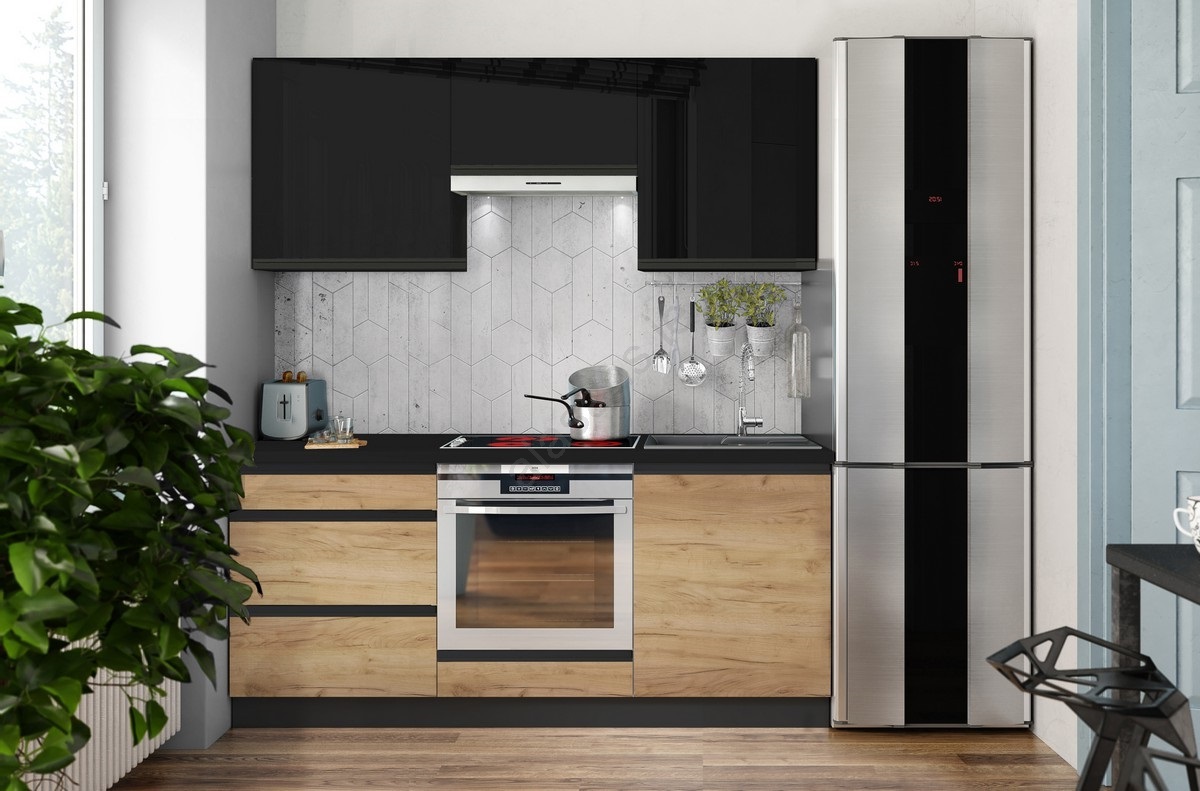 MARINA 180 cm kitchen unit, Craft Oak/Glossy Black