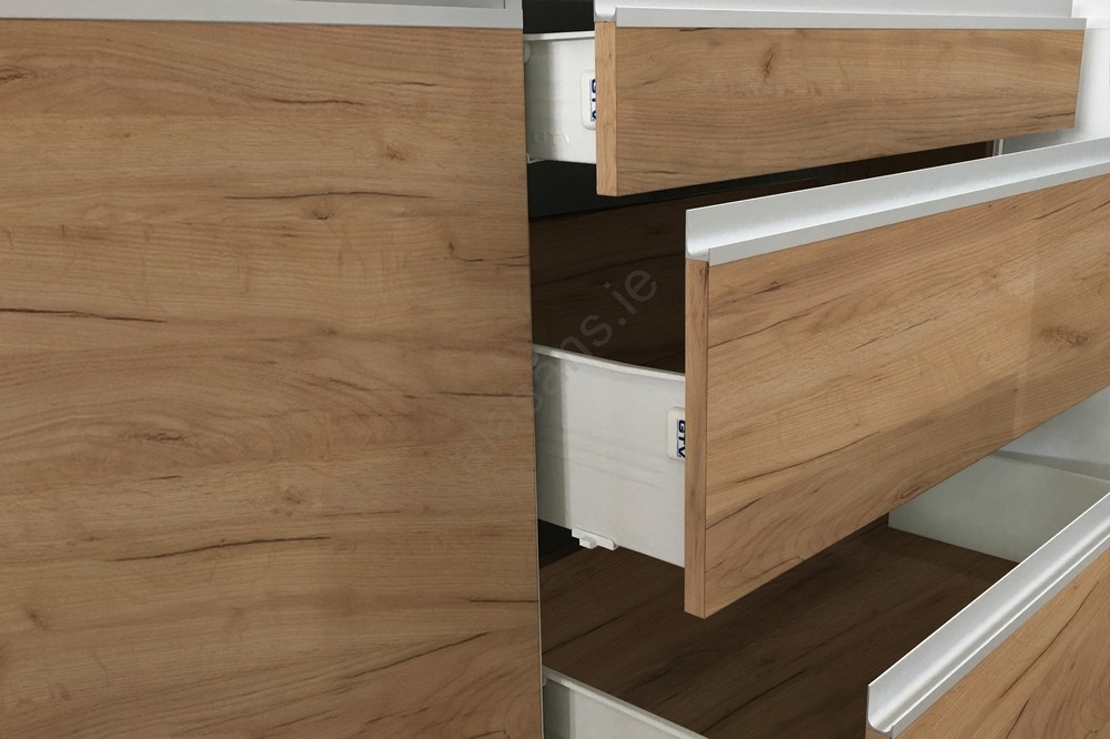 • Upper cabinets are fitted with gas pistons, the drawers are equipped with high-quality built-in encased metal runners.