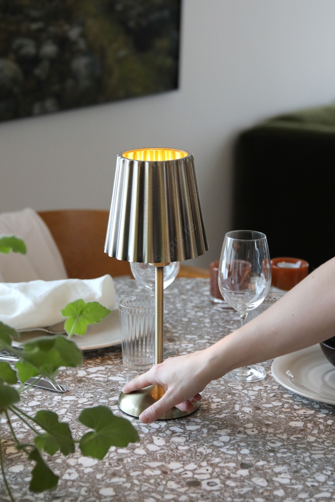 Markslöjd 109127 - CELIA LED Dimmable Rechargeable Touch-Control Table Lamp, 1x E14 / 2W / 2000 mAh, Brass