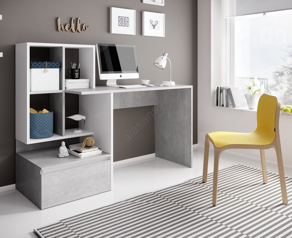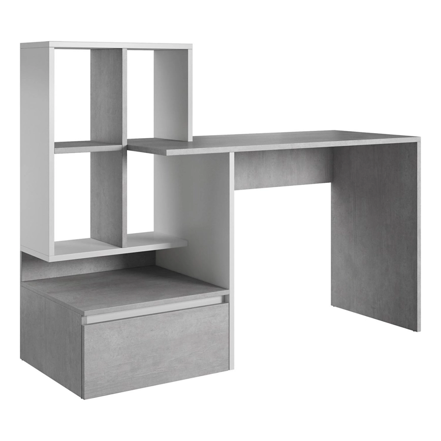 • MARLO Writing Desk with Shelf Concrete Grey/White