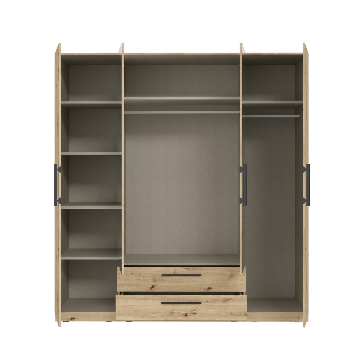 • The wardrobe features hanging rails, drawers, shelves and generous storage space for your clothing, bags and seasonal items.
