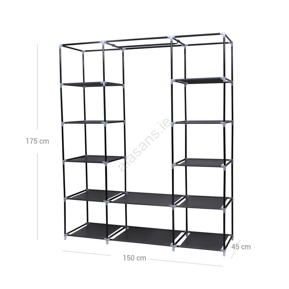 MATIS fabric wardrobe with shelves and clothes rail, 150 x 175 cm, black