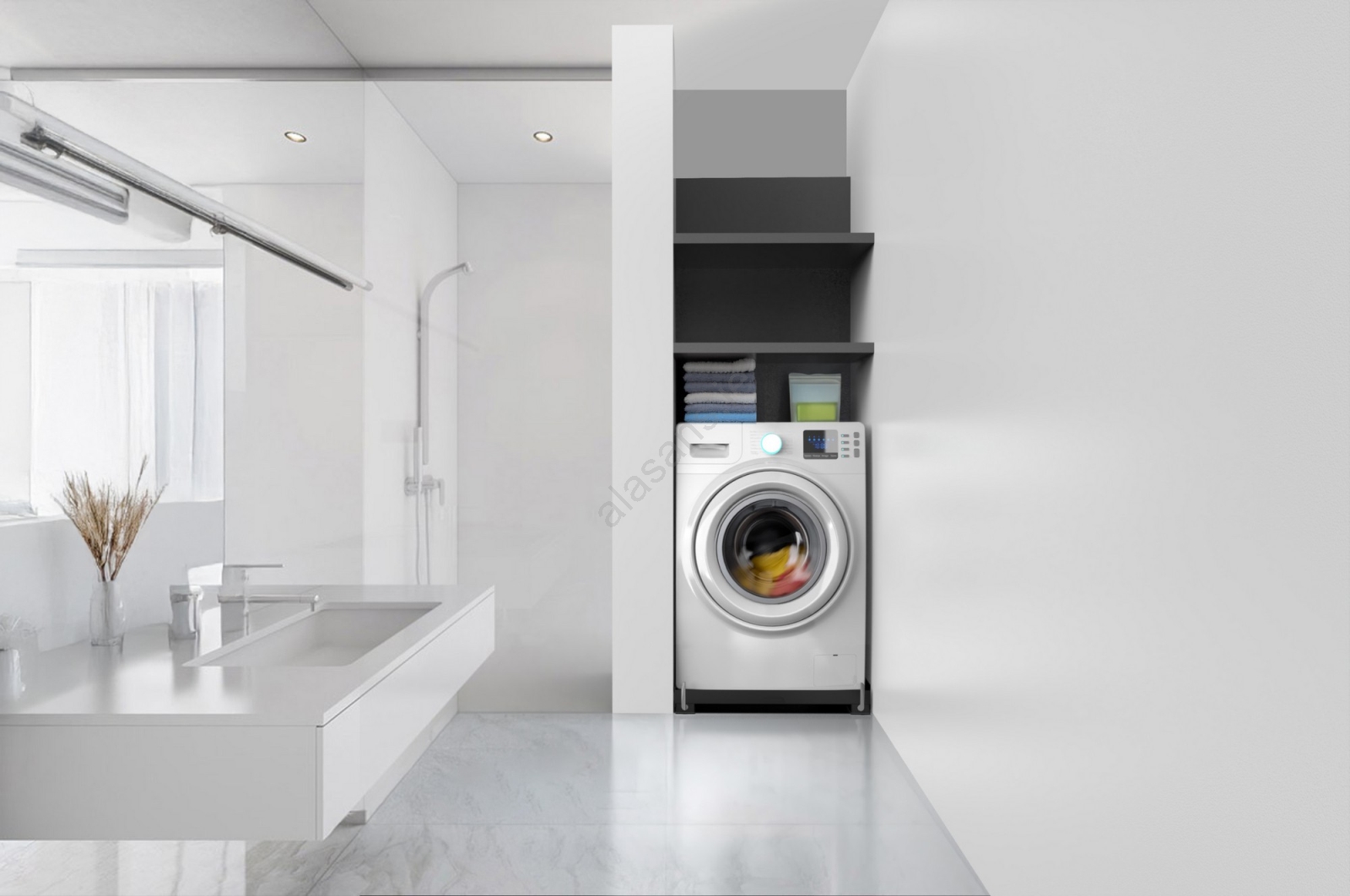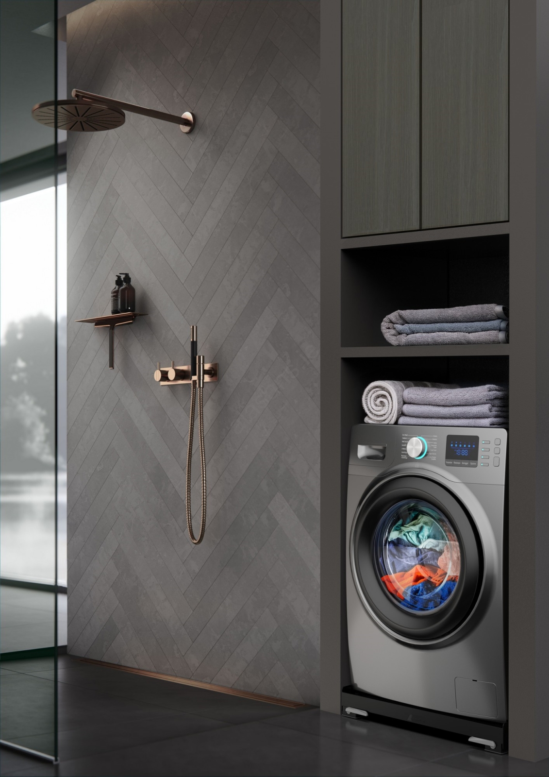 • Compact mobile base designed for „Slim“ washing machines and dryers with a depth of up to 47 cm.